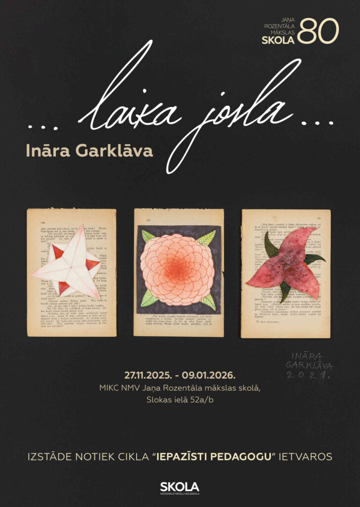 Šī gada 27.novembrī plkst. 12.00 aicinām uz JRMS skolotājas, mākslinieces Ināras Garklāvas izstādes “...laika joslas...” atklāšanu Slokas ielas 52B 1.stāva foajē.