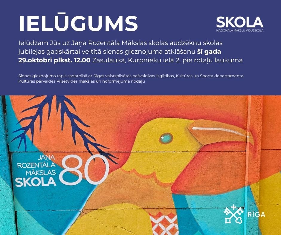 Turpinot svinēt skolas 80. gadskārtu, Jaņa Rozentāla Mākslas skolas audzēkņi un viesi šī gada 29. oktobrī Zasulaukā, Kurpnieku ielā 2 atklāja āra sienas gleznojumu.